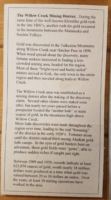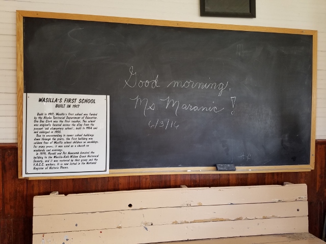 One of the local spots that we visited was the Dorothy Page Museum. The focus is on the history of Wasilla. There is so much history here. Wasilla was a supply base for gold miners during WWII as well as serving fur trappers. It was the starting point for the Iditarod Trail Sled Dog Race from 1973-2002 until the weather got too warm. It out-populated Palmer, the previous leading city in the Matanuska-Susitna Valley, once the George Parks Hwy was constructed around 1970. The hwy became the major thoroughfare and railroad transportation corridor linking southcentral Alaska to interior Alaska. It was at this juncture that community development began to soar in Wasilla. Wasilla is now the 6th largest city in Alaska.