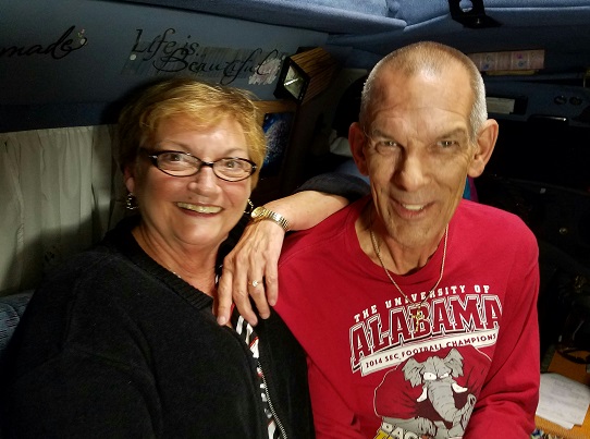 BRIGHT SPOT – Wayne and Catherine!!!! What a joy these two characters were!!! They met in May, 2016 at a church in Robertsdale, AL. Wayne was camp-hopping. They chatted a lot and found each other very easy to talk to. After a few months Catherine admitted that he started to look different to her. One day she texted him…”If you were just a little older…” He came running over to her RV!!!