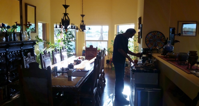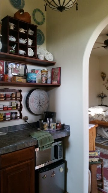He welcomed us and showed us around the place. He shared that 3 couples left that morning and so we had the entire 5,000 square feet all to ourselves…oh, yeah! Our suite, called the ‘Bird Room’ was more than either of us had anticipated. The ambiance was light and airy and the decor impeccable. It seems that this area is a huge birding paradise and our room reflected that. Above the headboard hung a beautiful quilt depicting the state birds of the lower 48. Once we got settled in, Carl and I took a walk around the exterior and interior of our home for the night.