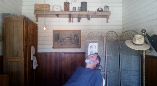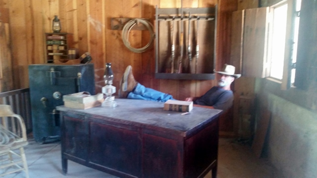 The whole experience was like being in a time warp…The saloon had pictures of movie stars that spent time there during the making of a movie…a honky-tonk piano that Jay entertained us with and round wooden tables like those back in the day where the guys played cards. This is also where Carl and I ate our picnic lunch while chatting with Jay after the tour. He told us so many fabulous stories about John Wayne, Kurt Russell, Glen Ford, Maureen O’Hara and Val Kilmer and tons more. Jay’s father worked in the business too and Jay got to act as a piano player or an extra in a lot of movies.