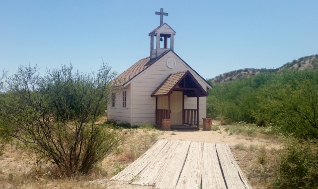 Neat piece of movie set trivia… this stands as a church in this pic… when they need a school, the cross folds down. |