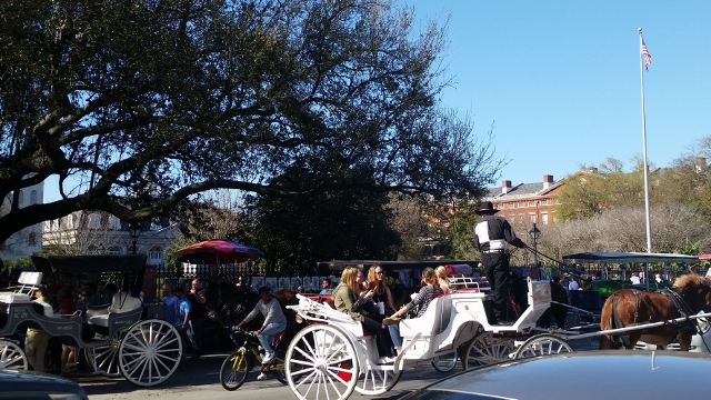 Carriages were lined up on Bourbon St like taxis are in New York City |