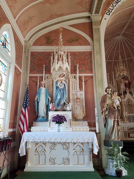 What I learned was that when the Czech and German immigrants came to Texas in the 1800’s, many settled in the central part and named their towns after the places they had left such as Schulenberg, near where these churches are and “…in an effort to make their new churches feel more like the ancient Gothic structures of their homelands, these early settlers painted the walls, altars, and arches of their simple wooden sanctuaries in colorful patterns and images…”