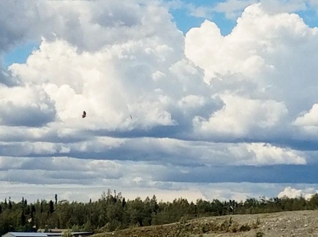 There are many places in Alaska that we’ve been told you can spot eagles. So far, we have not had much luck. We did get wind that you can sometimes see them at the landfill looking for snacks! LOL