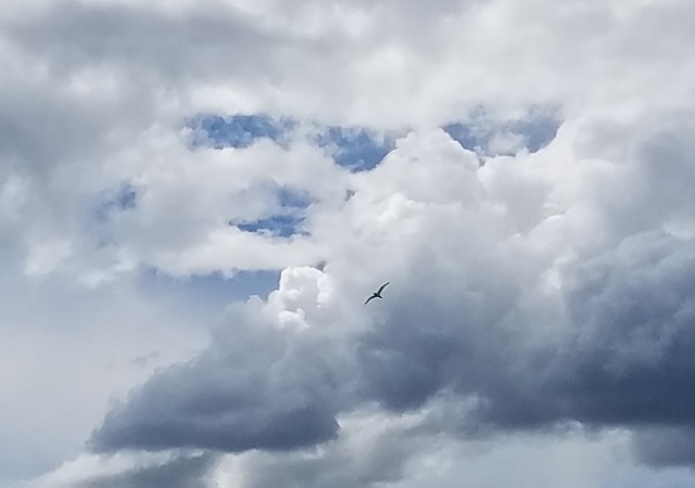 The sky was magnificent that day…the blue was super blue and the clouds were gloriously white. And that’s not the half of it…there were swirls and puffs and…even faces! See pics.