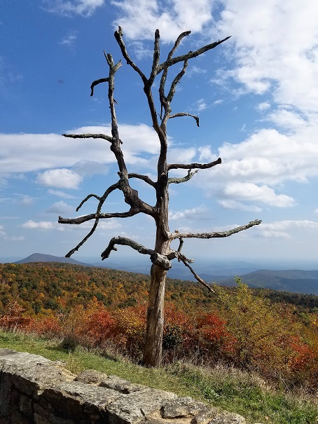 What an amazing time of year to witness the beauty of Skyline Drive in Virginia! The leaves were gorgeous even with an overcast day. I had no idea just how curvy and steep the drive would be…good thing I didn’t!!! LOL Flashbacks of the trip to Alaska through British Columbia, the Yukon and the Al-Can rushed through my mind’s eye…accompanied by butterflies in my stomach! That sure made an impression! Nonetheless, I made it and it was well worth the mild angst.